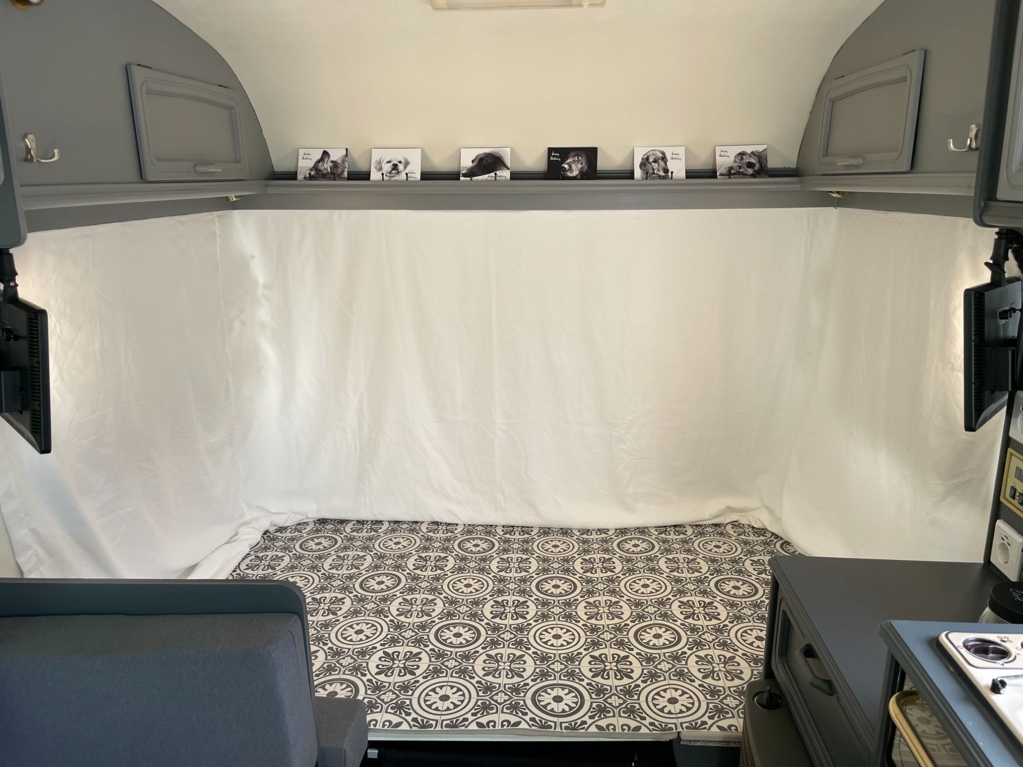 Eine Location für meine Shootings zu finden war nicht ganz einfach und unsere Garage war auch nicht die beste Lösung. Es sollte eine hundefreundliche, hübsche, mobile und praktische Lösung her und da wir selber auch Erfahrung im Campen haben, bin ich auf die Idee gekommen eine alten Caravan in ein Fotostudio für Hunde umzubauen ;-)) Die Suche nach dem geeigneten Wohnwagen war nicht ganz einfach aber ich war dann schließlich doch erfolgreich! Jippie, der 25 Jahre alte Bailey Ranger sollte es sein! In liebevoller Kleinstarbeit habe ich den alten Wagen entkernt und renoviert... Er wurde von mir in ein super gemütliches Caravan-Studio, die Dogs-Foto-Box, umgestaltet. Am meisten freut mich, dass meine tierischen Kunden das Studio sehr gerne annehmen und sich offensichtlich nach kurzer Zeit wohlfühlen!